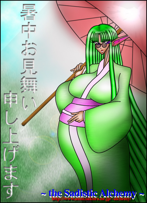 Sadistic Alchemy 〜嗜虐的錬金術〜のSIMON=Mさんから暑中見舞いをいただきました。相変わらず妊婦好きなお方ですよね(笑) でもいつものCGに比べると鬼畜度が少ないような気もしますが、「世界の果て」も丸くなられたのでしょうか? |